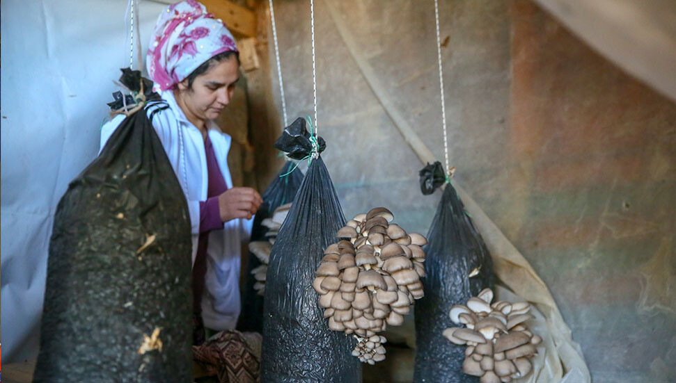 Bu sayede okulda teorik eğitim alan kursiyerler, evlerinin altındaki depolarda istiridye mantarı yetiştirmeye başladı.